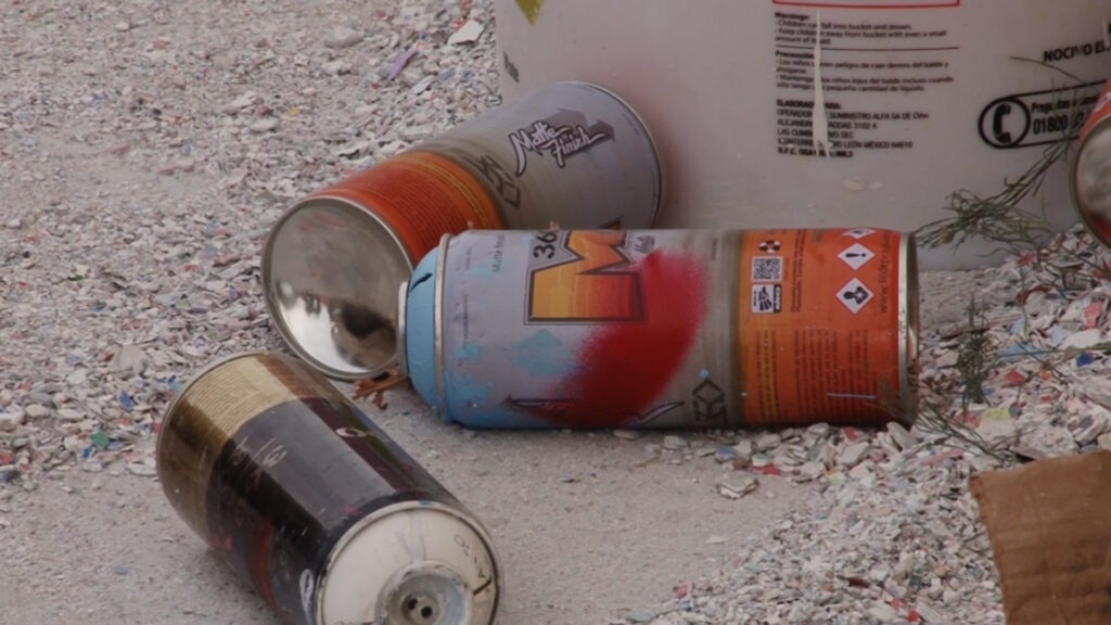En el lugar quedaron latas y botellas de cerveza que fueron consumidas en la vía pública por los involucrados en la elaboración del mural.
