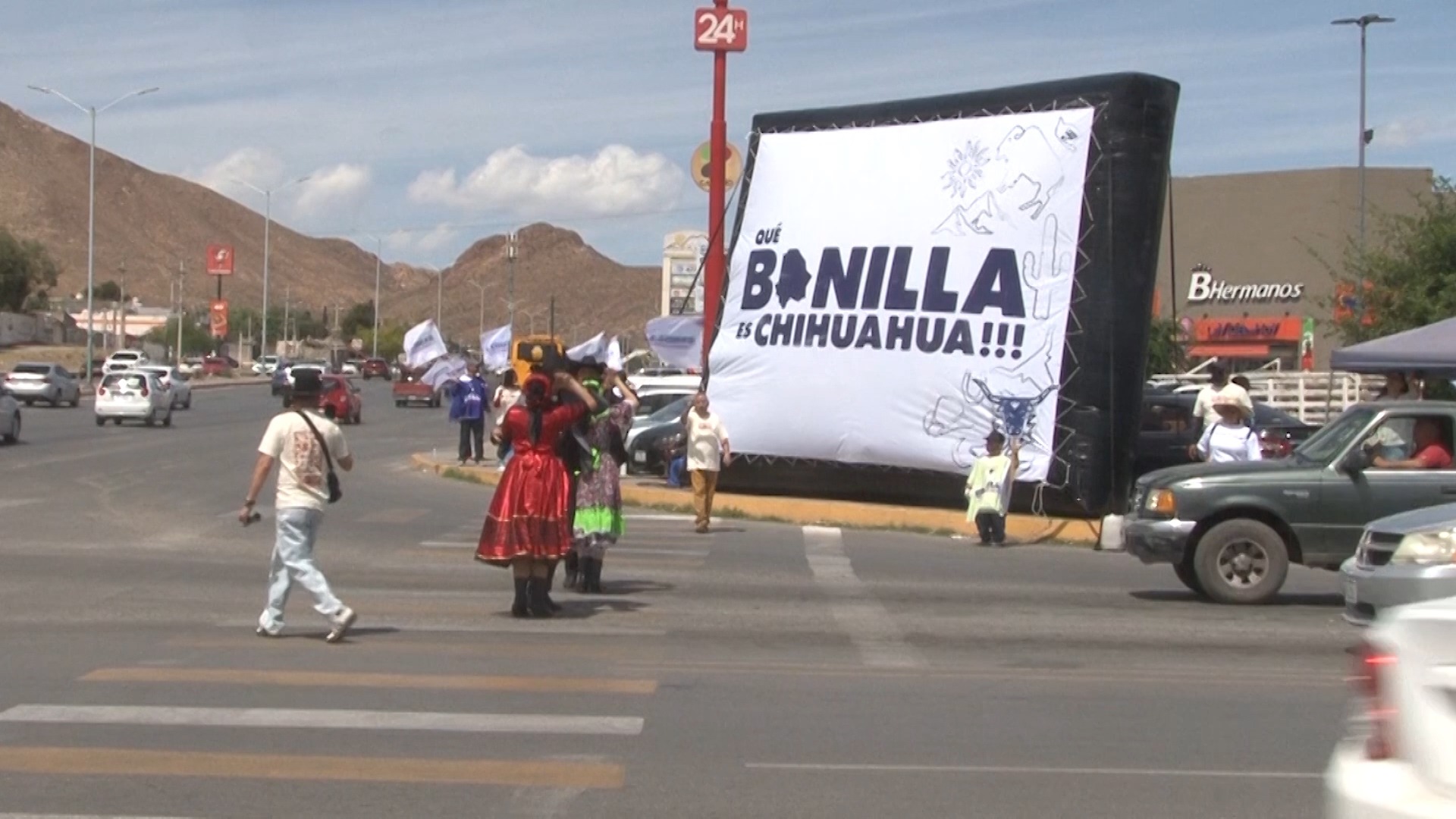 Chihuahua, Chih.- Con pancartas, banderas y música, diversos grupos de simpatizantes promovieron la página denominada ‘’Qué Bonilla es Chihuahua’’ en el cruce del Periférico R. Almada y la calle Nueva España. Ante la movilización, los habitantes de la capital dividieron opiniones sobre la naturaleza de estas actividades realizadas en el sector sur de la ciudad.