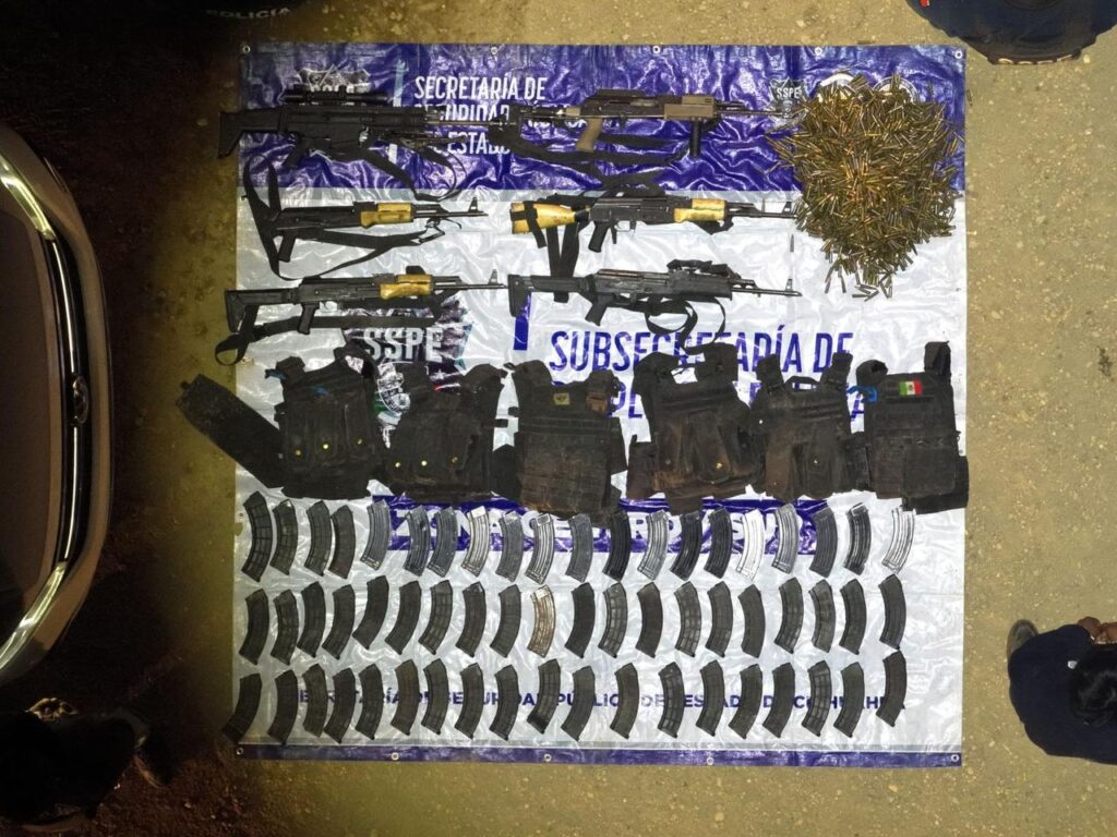 A los detenidos les fueron aseguradas seis armas largas, mil 770 cartuchos útiles, 60 cargadores y diversos chalecos tácticos.