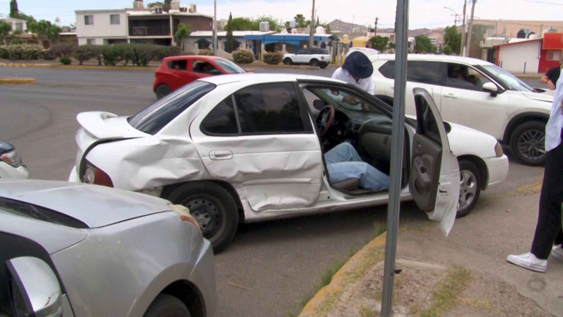 Chihuahua, Chih.- Dos adultos mayores resultaron lesionados luego de un choque registrado cuando la camioneta Nissan X-Trail en la que viajaban impactó a un vehículo Nissan Sentra que cruzó de manera inesperada el bulevar Ortiz Mena, a la altura de la calle Laguna de Hormigas, en la colonia San Felipe.