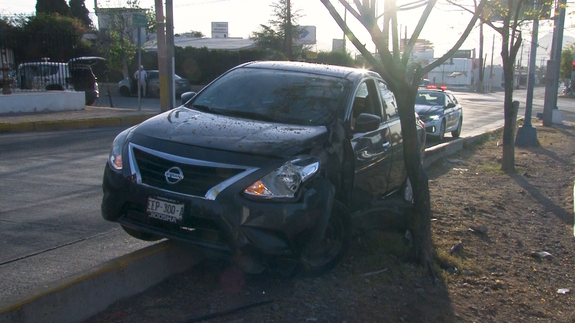De acuerdo con los reportes, un Nissan Versa impactó contra el camellón y quedó encima de éste tras el derrape provocado por la velocidad a la que era conducido.