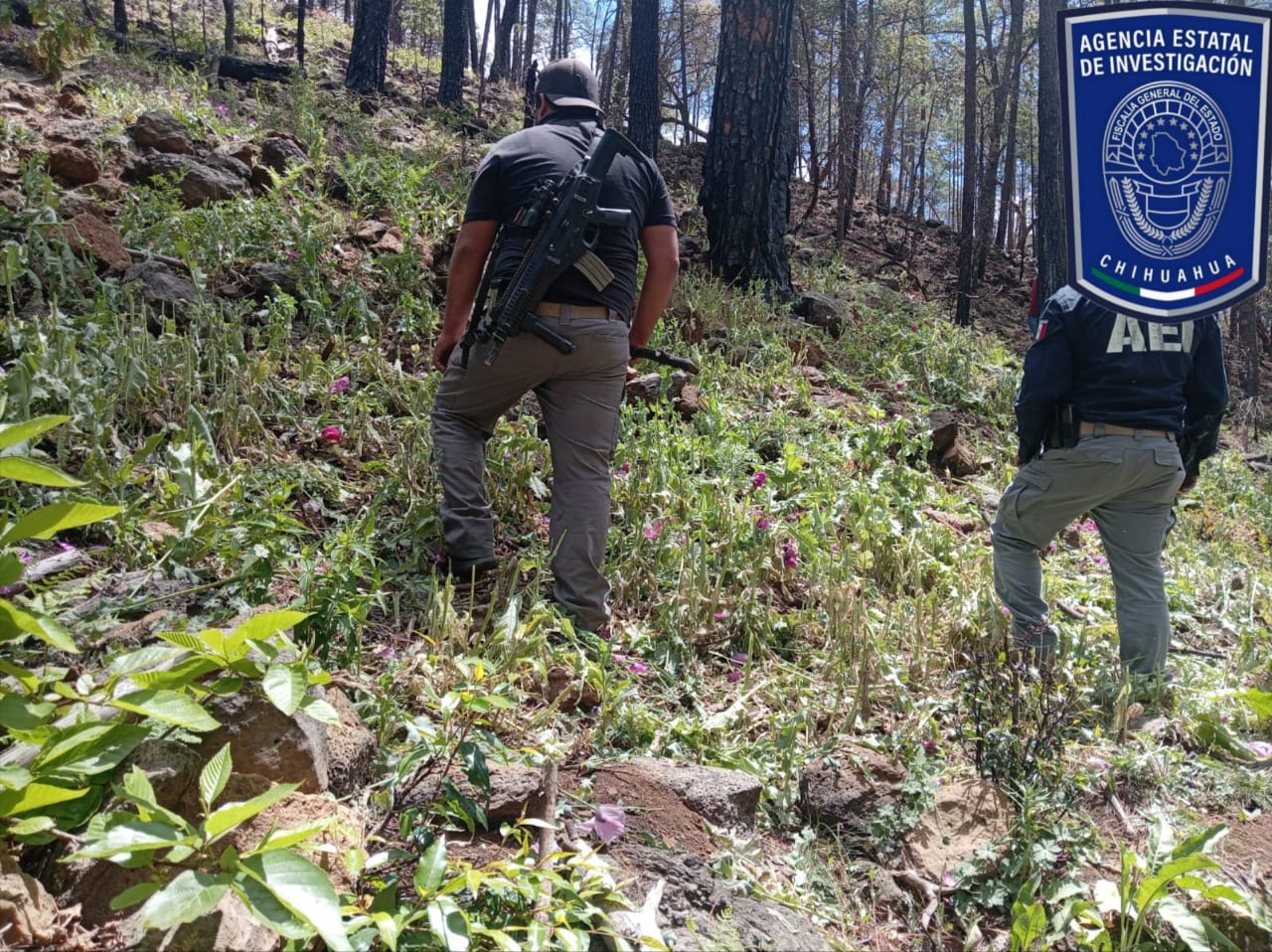 Chihuahua.- Elementos de la Agencia Estatal de Investigación (AEI) localizaron y destruyeron un sembradío de amapola en el municipio de Guadalupe y Calvo, como resultado de las labores de rastreo y vigilancia que se mantienen de forma permanente en la región serrana.