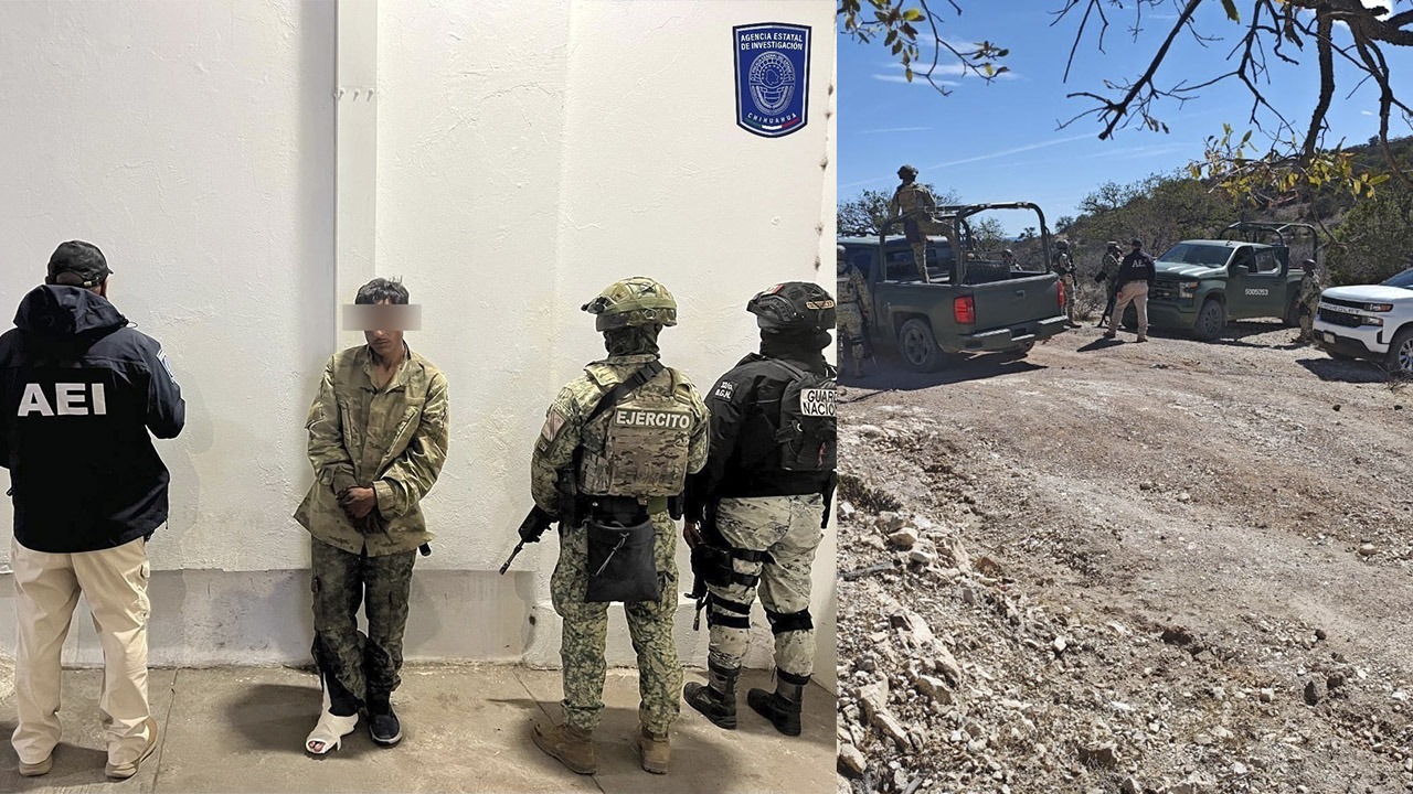 Chihuahua.- Elementos de la Agencia Estatal de Investigación que participan en un operativo inter institucional con el Ejército Mexicano y la Guardia Nacional, detuvieron a un masculino en posesión de un arma de fuego, y destruyeron cuatro campamentos y parapetos en la localidad de El Terrero, municipio de Nonoava.