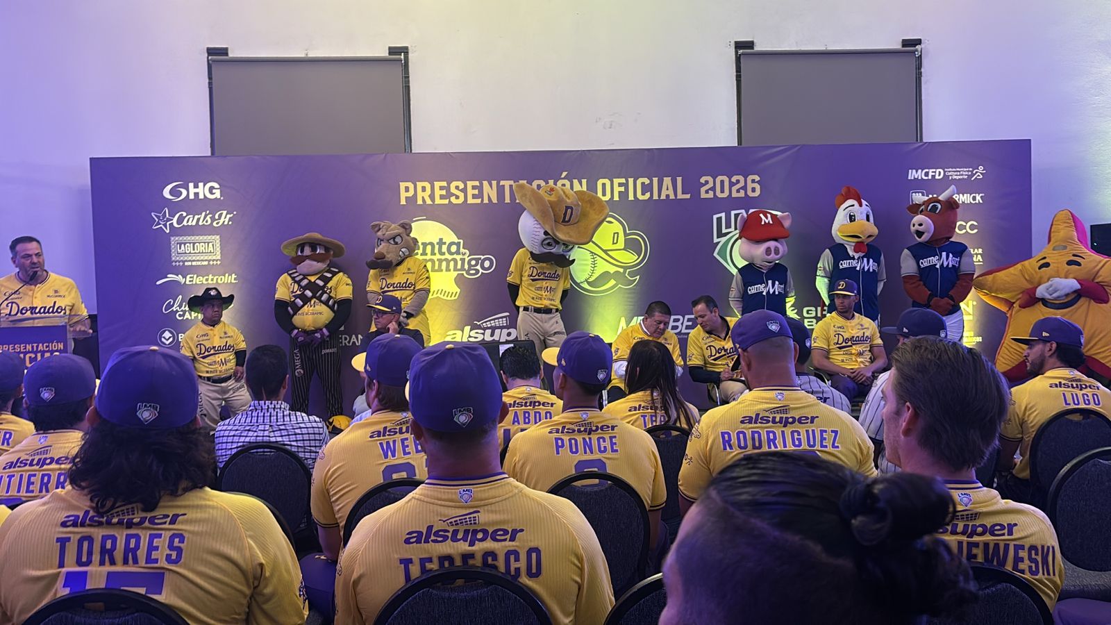 Chihuahua, Chih.- En un evento de gala realizado en el Salón 25 de Marzo de Palacio de Gobierno, el club Dorados de Chihuahua de la Liga Mexicana de Béisbol (LMB) realizó la presentación oficial de su plantilla y los uniformes que lucirán durante la Temporada 2026. La ceremonia marca el inicio de las actividades previas al arranque del calendario regular, pactado para este jueves 16 de abril.