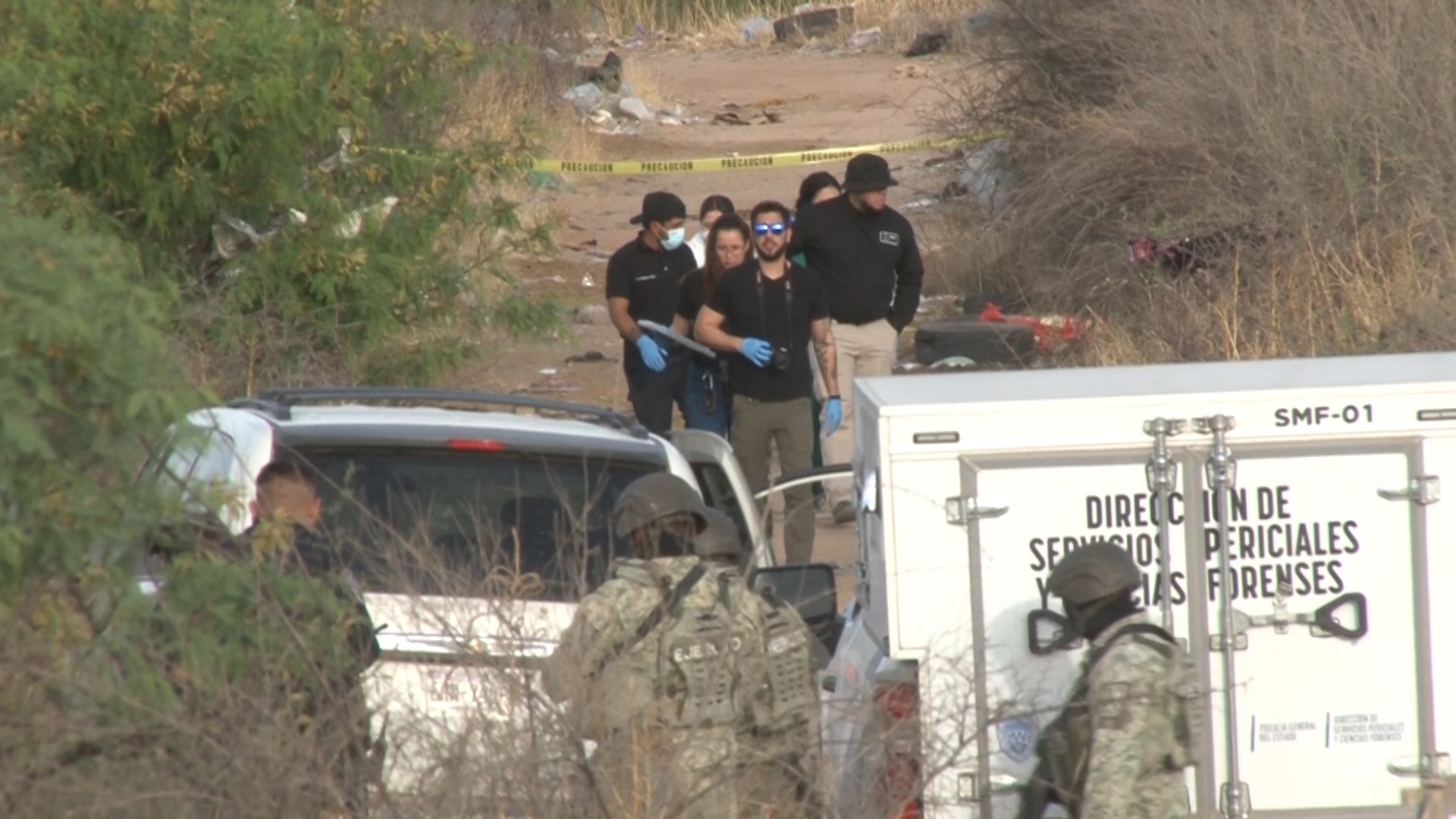 El occiso, cuya identidad no ha sido confirmada y que presentaba signos de violencia, portaba un pantalón de mezclilla, playera blanca y calcetines blancos. Fue encontrado con unas llantas encima y una chamarra sobre la cabeza.
