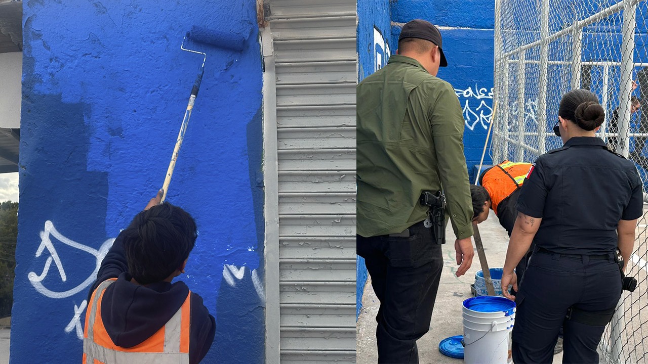 Chihuahua, Chih.- Como parte de las acciones de la Unidad de Atención a Pandillas de la Dirección de Seguridad Pública Municipal, se realizan intervenciones en distintos puntos de la ciudad donde se han detectado pintas o grafiti, con el objetivo de recuperar espacios afectados.