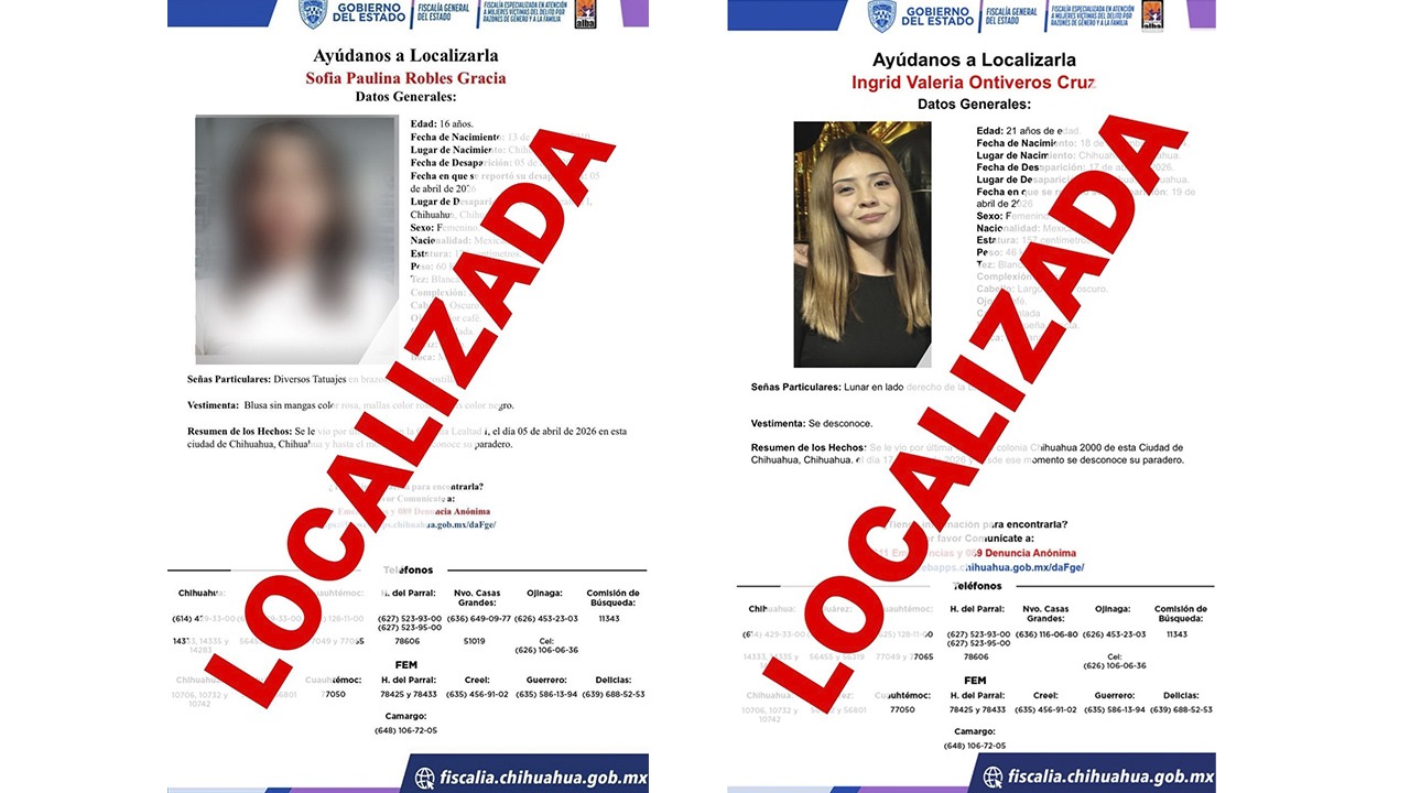 Mientras que la ausencia de la joven, fue reportada el 17 de abril de 2026, cuando se ausentó en la colonia Chihuahua 2000.