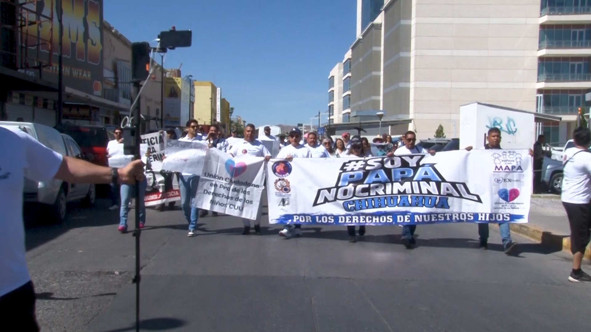 Chihuahua, Chih.- Padres de familia se manifestaron a lo largo del centro de la ciudad de Chihuahua para denunciar lo que consideran abusos en su contra dentro de procesos legales relacionados con la convivencia con sus hijos. Entre sus señalamientos mencionaron denuncias falsas, el derecho de los menores a convivir con ambos padres, así como la aplicación de la Ley “Alina” sobre defensa propia en casos de violencia y la tipificación de la violencia vicaria.