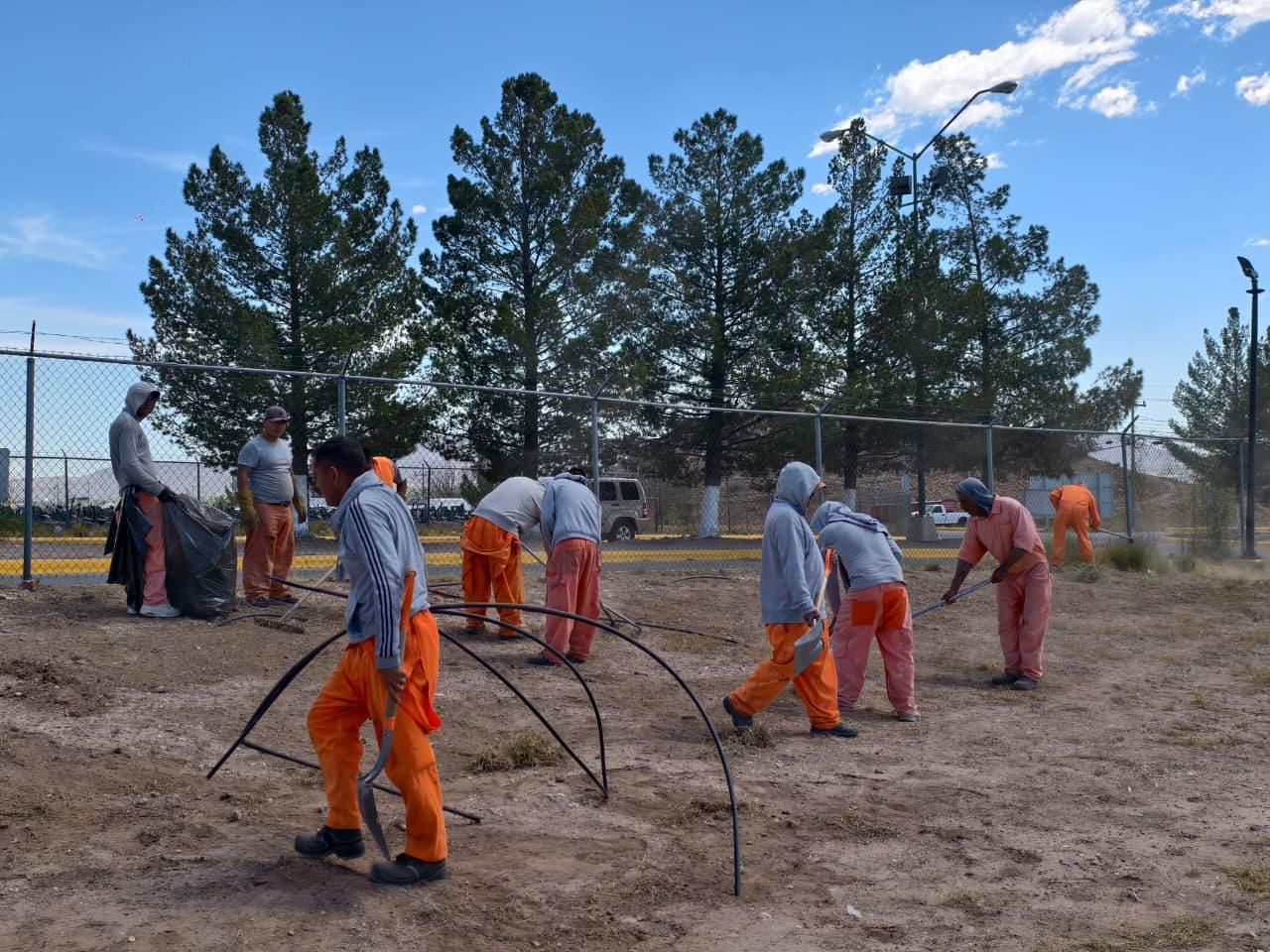 Chihuahua, Chih.- Como parte de los esfuerzos de reinserción social implementados por la Secretaría de Seguridad Pública del Estado (SSPE), a través del Sistema Penitenciario, se llevó a cabo la participación de 20 personas privadas de la libertad (PPL) del CERESO No. 1 en labores de mantenimiento dentro de las instalaciones del Complejo Estatal de Seguridad Pública.