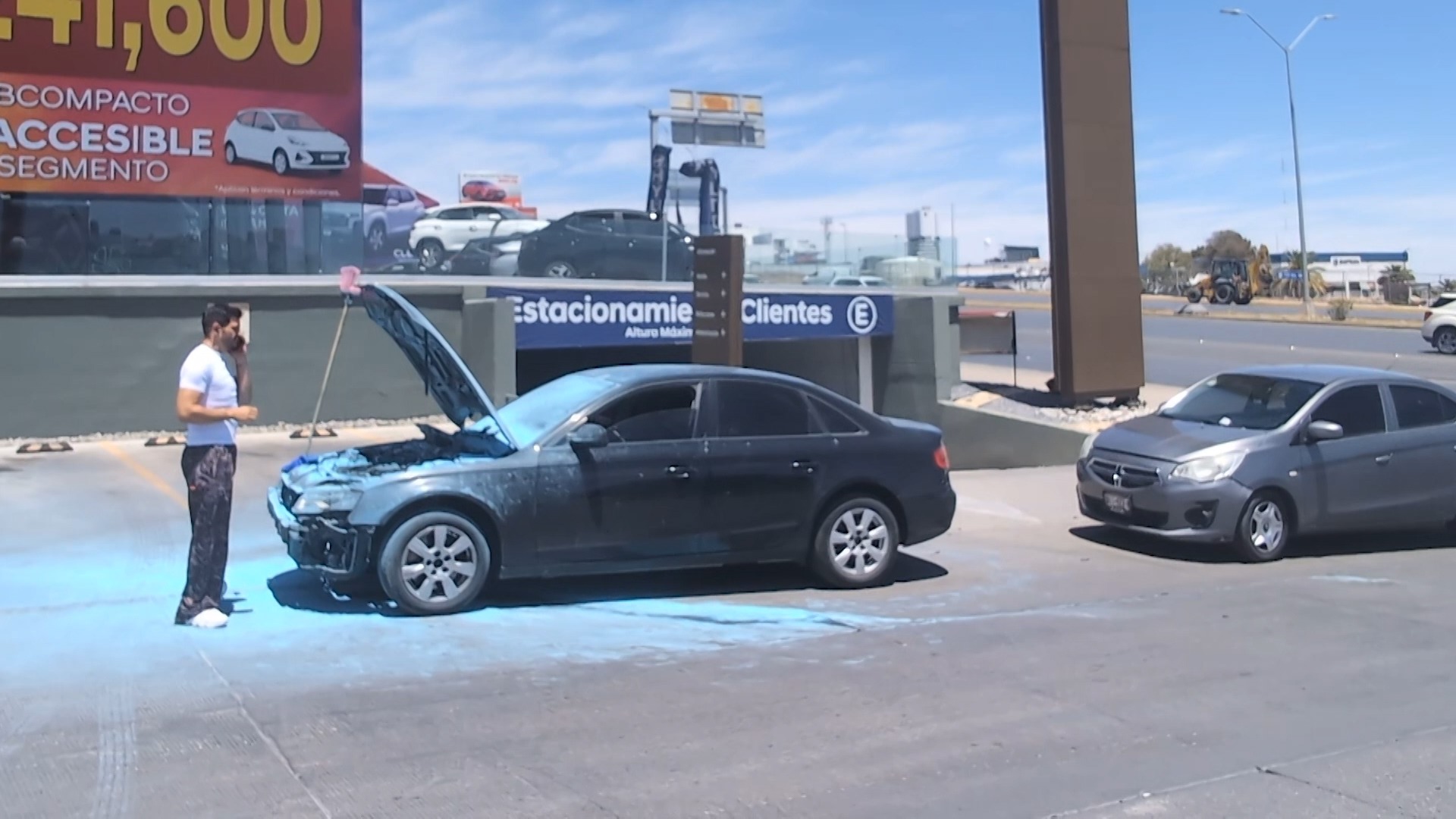 Por falla mecánica, fuego consumió Audi afuera de agencia