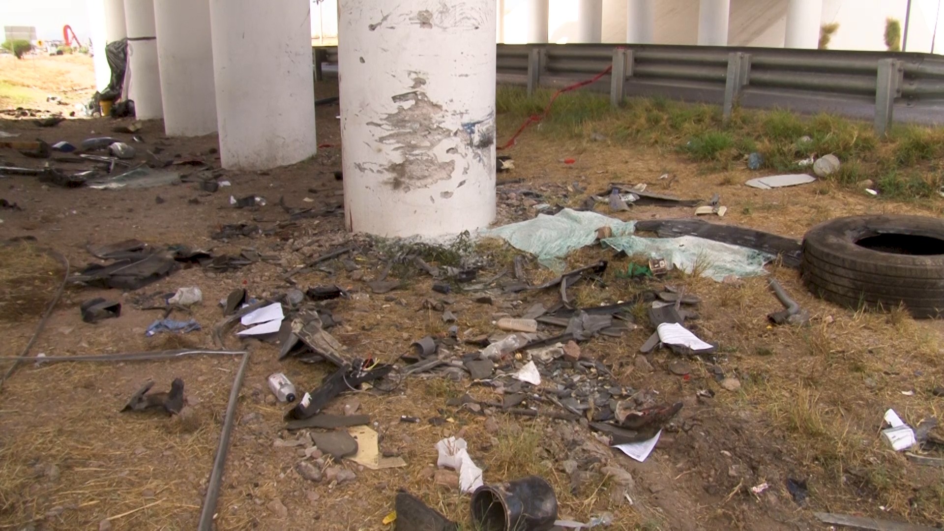 Chihuahua.- El lugar donde se registró el choque de un autobús contra una columna en la carretera Delicias a Chihuahua muestra los estragos del accidente.