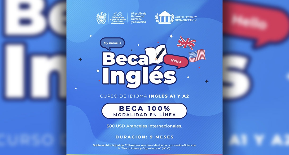 Chihuahua, Chih.- El Gobierno Municipal de Chihuahua, invita a la ciudadanía a registrarse en la Beca de Inglés, disponible gracias a la colaboración con la World Literacy Organization (WLO) y el respaldo académico de la Universidad CEU Cardenal Herrera.