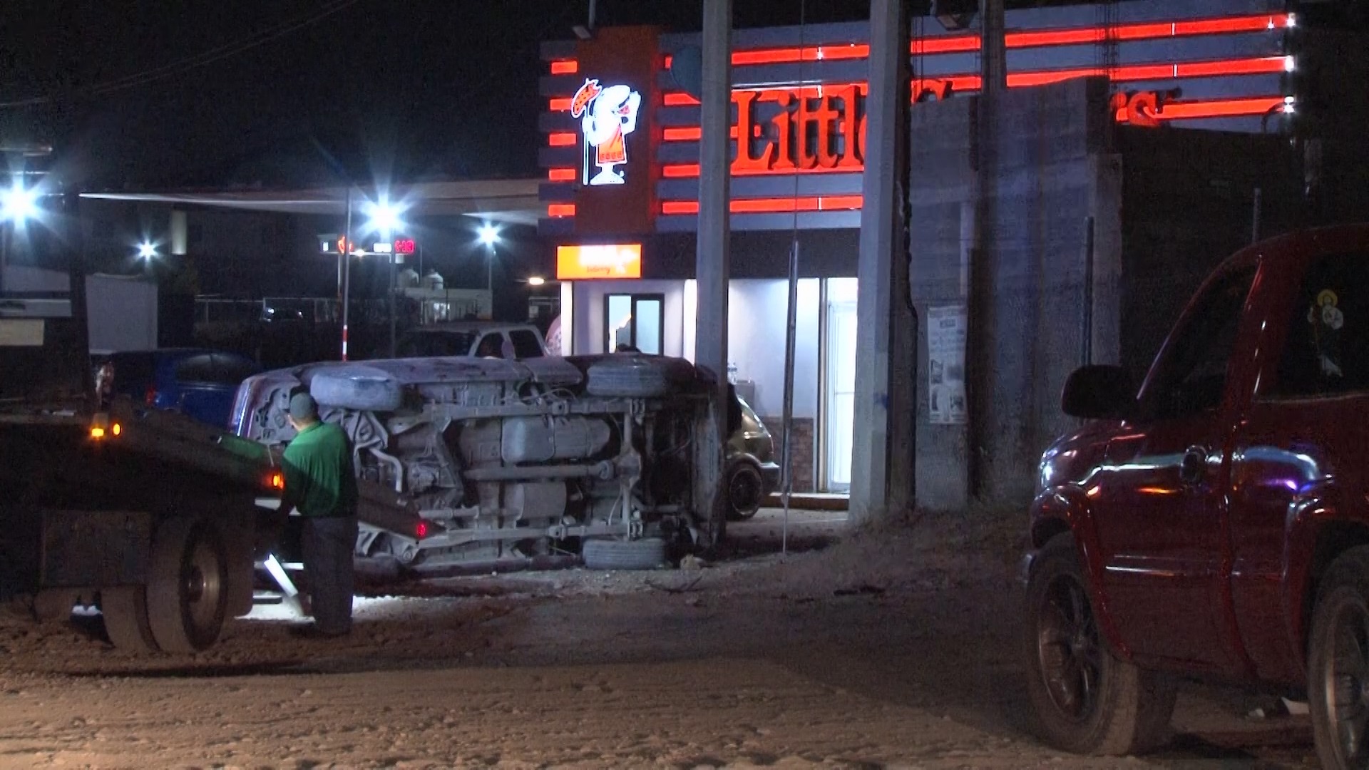 Esto provocó que la unidad volcara sobre su lado derecho, frente a un local de pizzas ubicado en la zona.