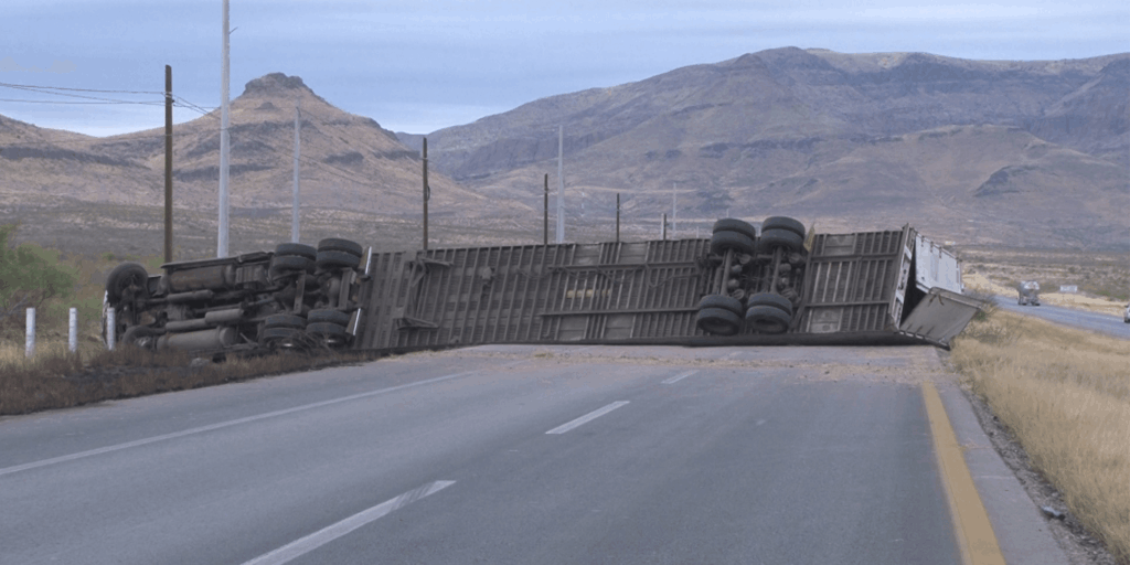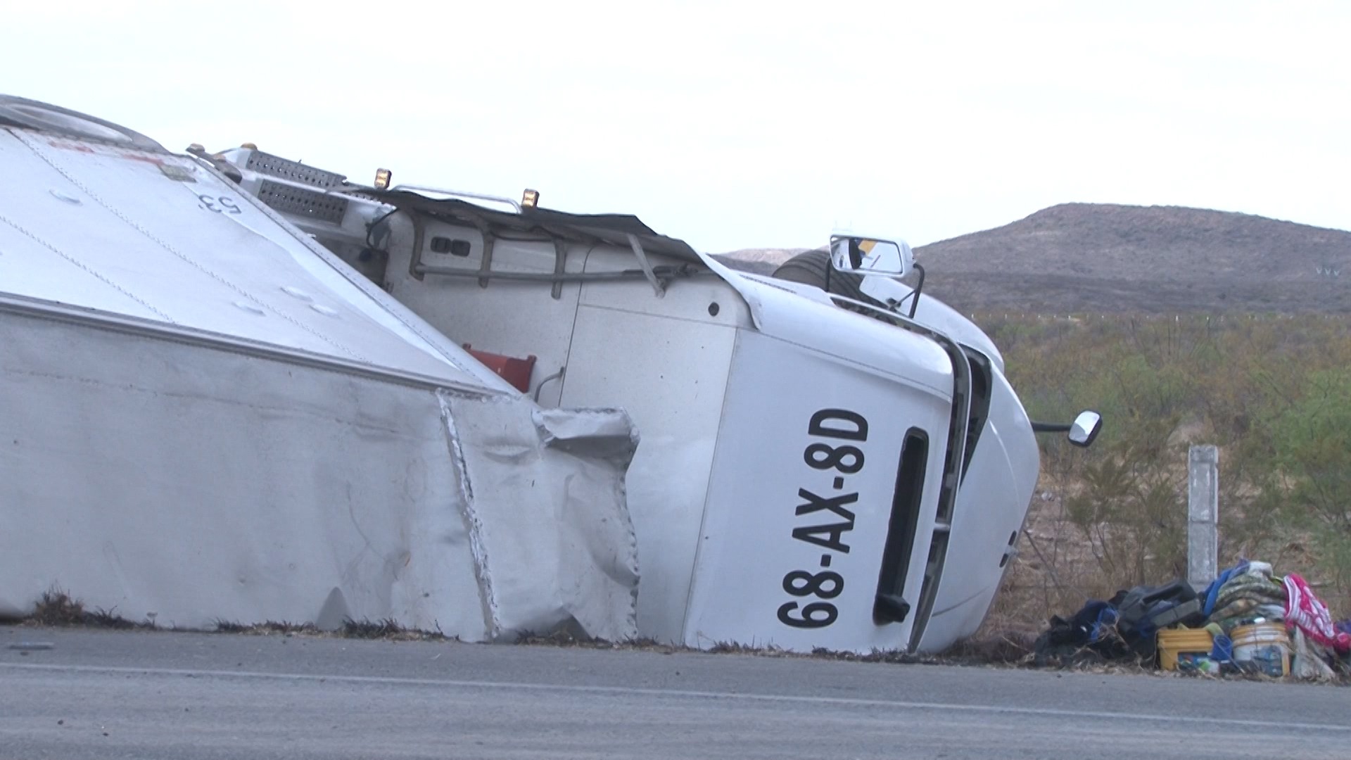 El quinta rueda venía de Querétaro y se dirigía a Ciudad Juárez; al momento de rebasar a un dompe, este le cerró la circulación, por lo que el conductor perdió el control, brincó el camellón y terminó volcando en el carril opuesto.